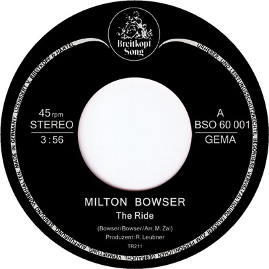 Digital Milton Bowser The Ride Tramp Records Cat No: TR211 Format 420 JPY Wishlist BuyDigital Sample1Sample2 Track List 1. Milton Bowser - The Ride 03:55 2. Milton Bowser - The Thief 03:00