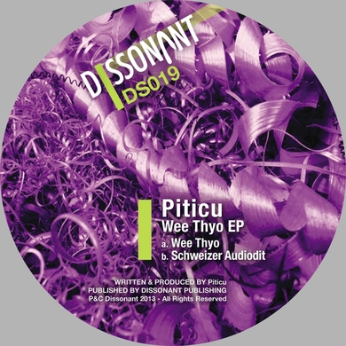 Digital Piticu Wee Thyo Dissonant Cat No: DS019 Format 460 JPY Wishlist BuyDigital Sample1Sample2 Track List 1. Piticu - Wee Thyo (Original Mix) 10:14 2. Piticu - Schweizer Audiodit (Original Mix) 10:09