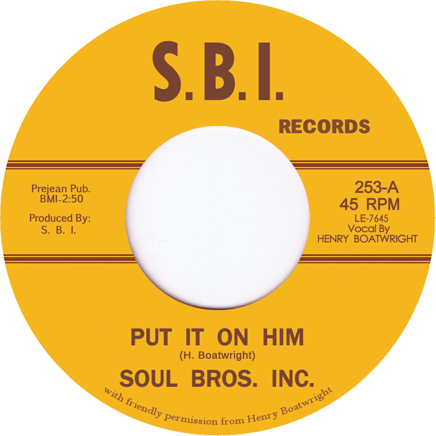The Soul Brothers Inc. hail from Houston, Texas and were likely one of the most important funk/soul groups in the city in the late 1960s until they broke up in the mid '70s. Tramp released The Story of the Soul Bros. Inc. in late 2010, now it is time to pick two lesser known songs for release on 45rpm single. Both sides are equally great, especially Put It On Him with its heavy drums and and wah wah guitar throughout the song.